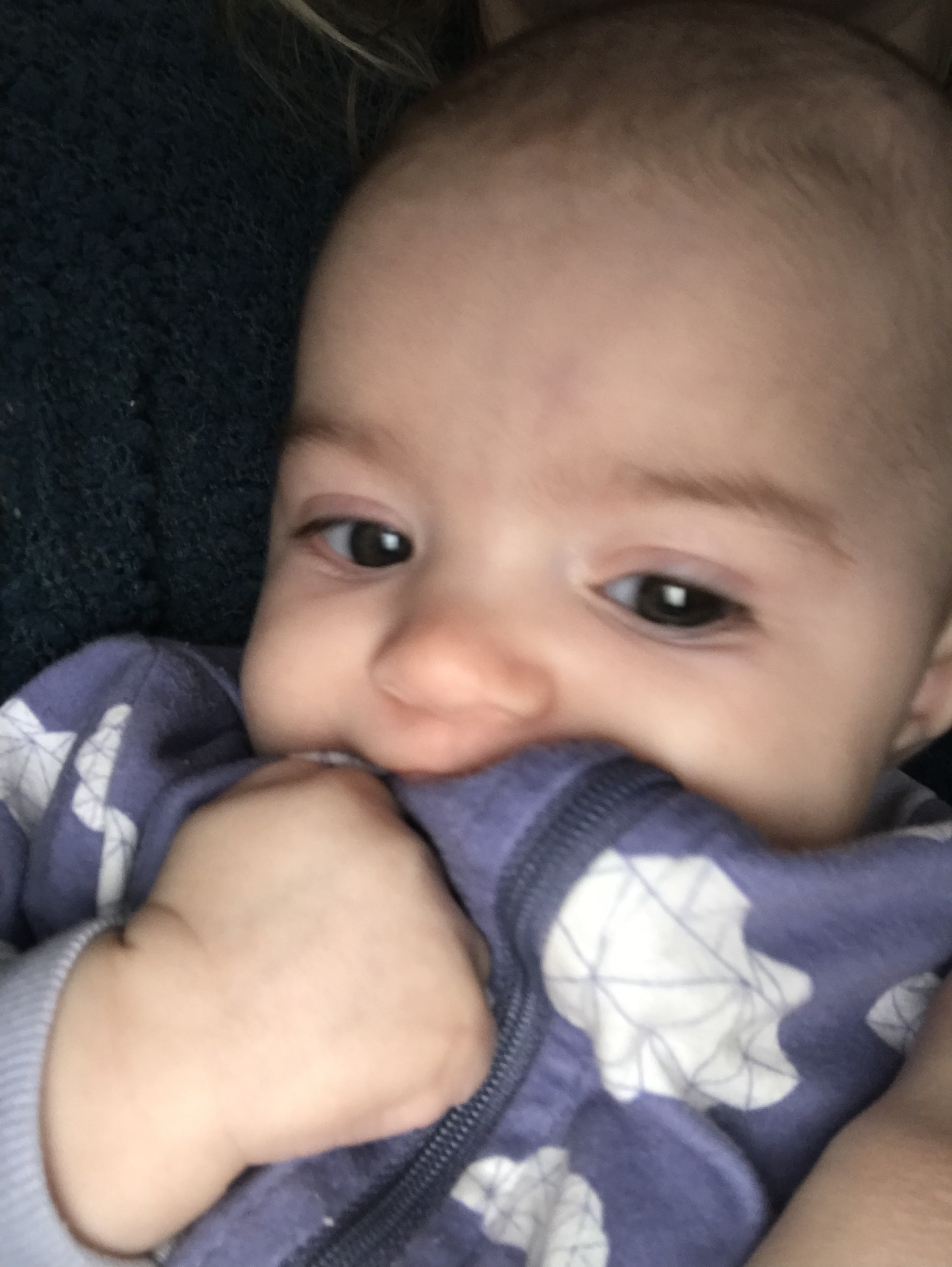 *Due to recent measles outbreaks in America – My doctor has recommended an early dosage of the MMR Vaccine at Aria’s 6 month visit. We have declined but I thought this was important to mention.